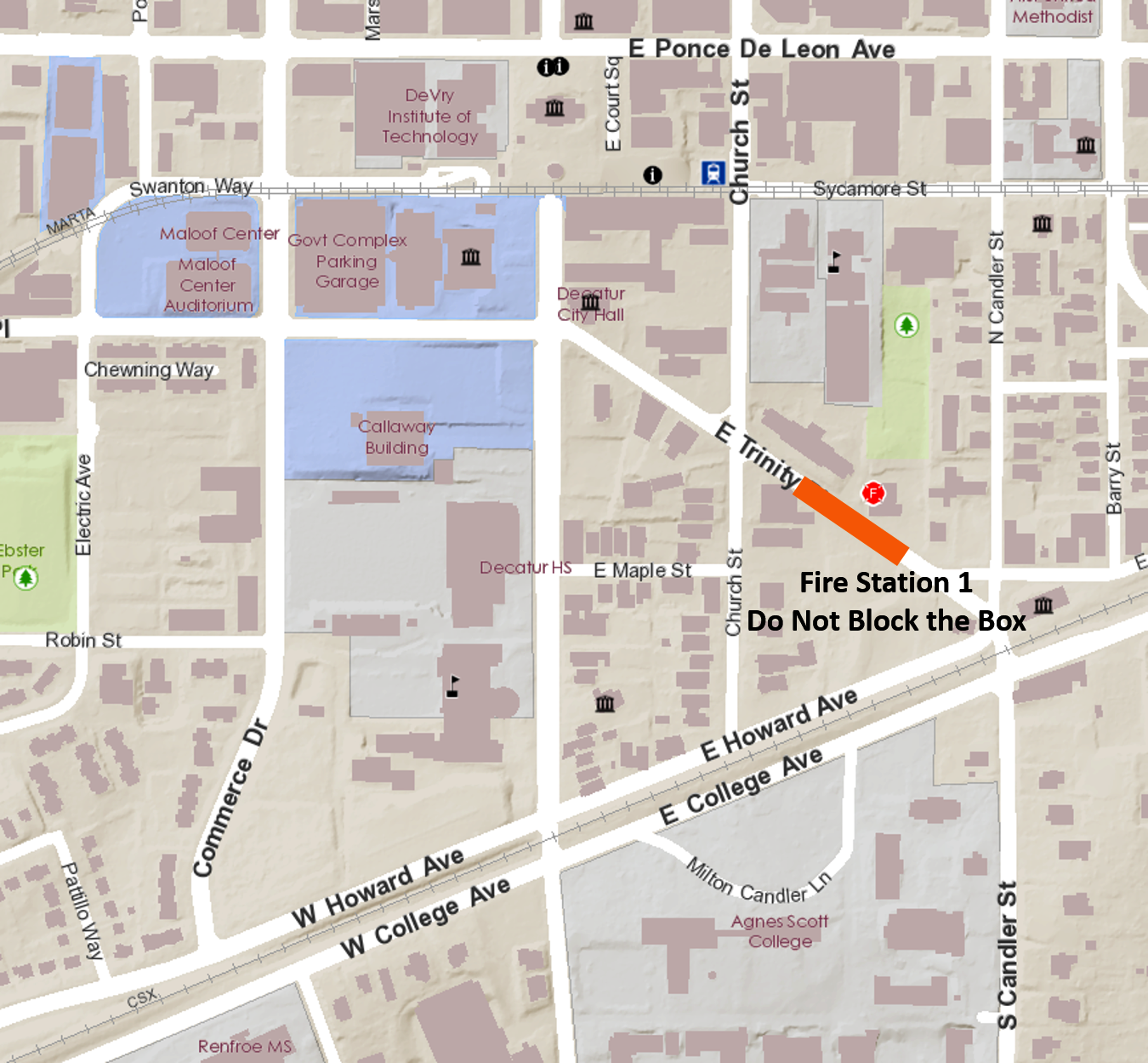 “Don’t Block the Box” pavement striping will be installed on East Trinity Place at Decatur Fire Station No. 1 starting at 9 AM on Friday, April 6.